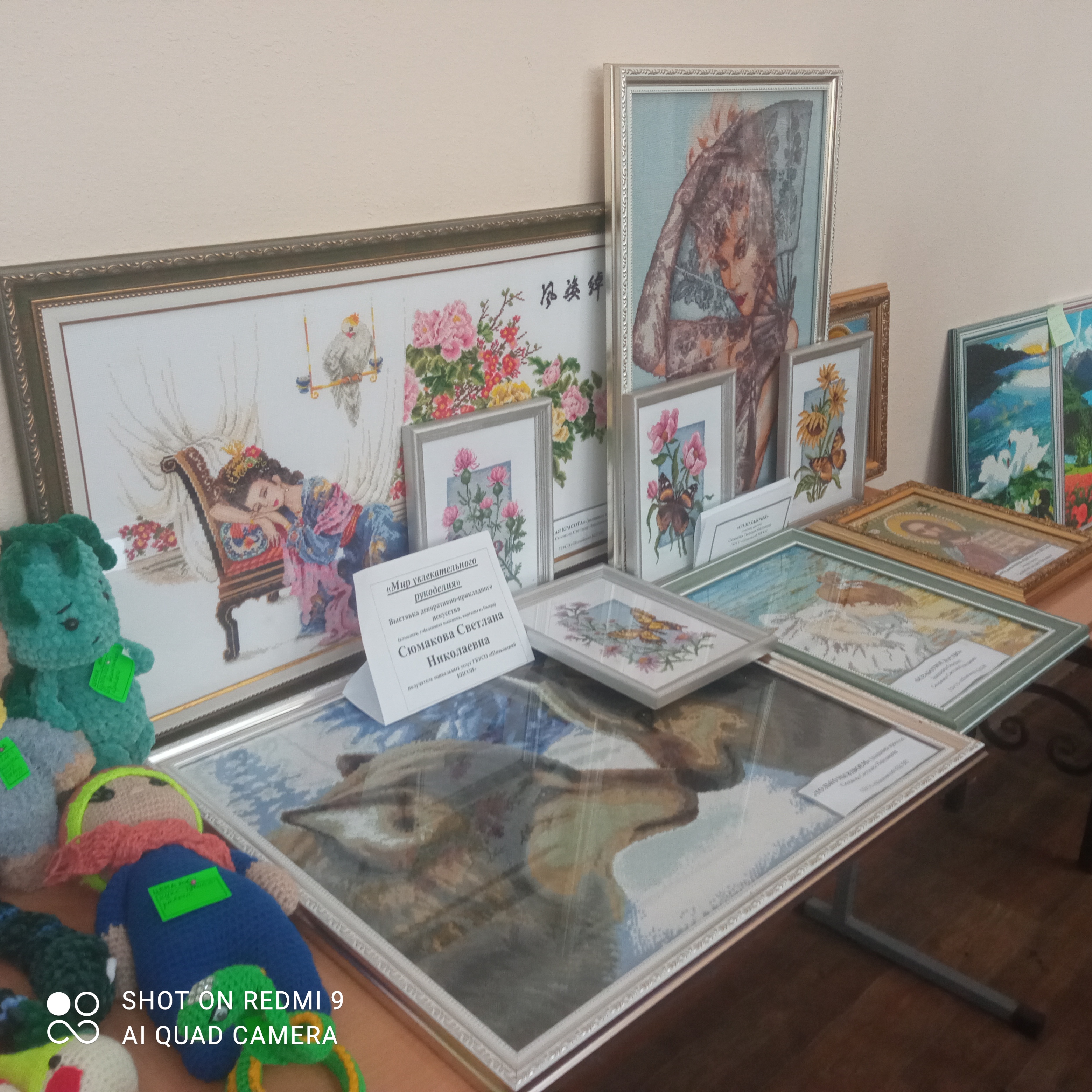 Перед концертом была развернута выставка изделий декоративно прикладного творчества, выполненная в различных техниках, и рисунков. Восторг зрителей вызвали работы Распопа Валентины Дмитриевны — картины-панно «Букеты цветов» из семян и засушенных цветов, Сюмаковой Светланы Николаевны — картины «Тихая красота», «Нежная тайна» в технике гобеленовой и алмазной вышивки; изделия, картины-иконы из бисера и страз Свинуховой Людмилы Ивановны, Никитенко Галины Ивановны - изделия из бисера, иконы из бисера и страз; картины Флягиной Ларисы Александровны (в технике акварель, акрил, гуашь); поделки вышивка шелковыми ленточками Летуновой Муххабат Акбаровны, вязаные игрушки Губановой Светланы Ивановны и другие.