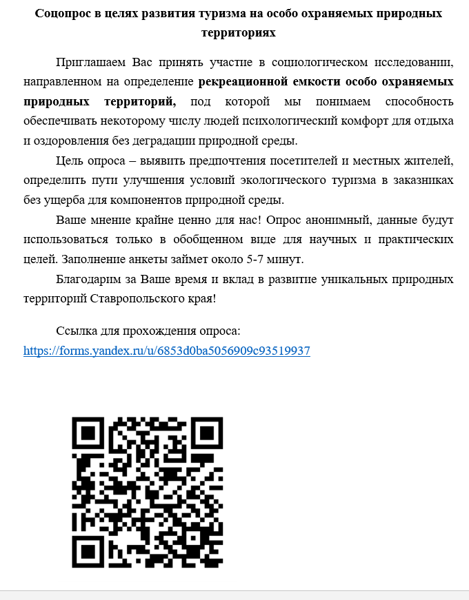 Соцопрос в целях развития туризма на особо охраняемых природных территориях