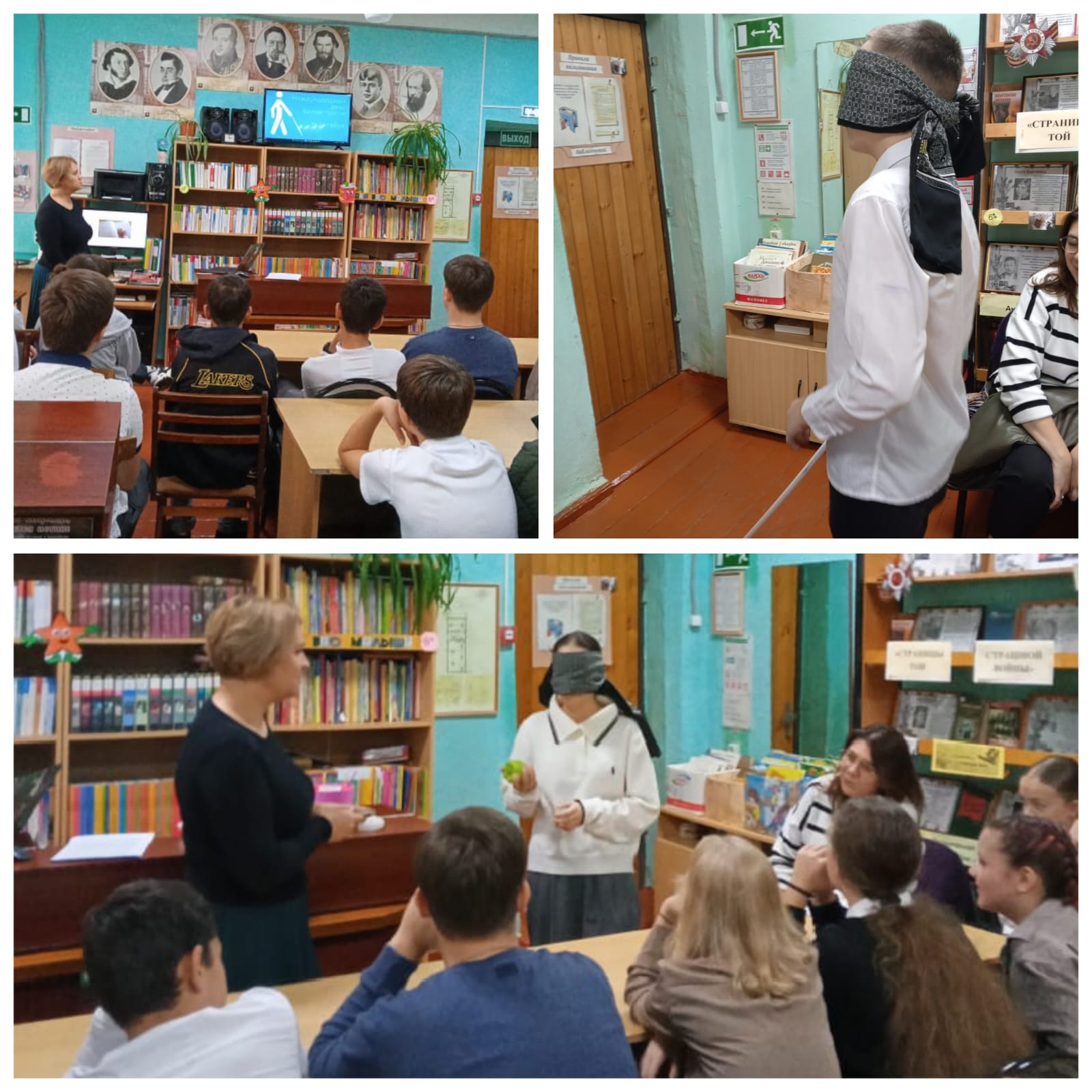 15 октября библиотека-филиал № 6 (г. Михайловск) для младших школьников и их родителей организовала информационный курьер «Увидеть себя в этом мире» и оформили выставку «Время увидеть незрячих», где представлены книги авторов лишённых зрения: Э.Асадов, В.Короленко, Н.Островский, Гомер, информационные листовки, памятки и алгоритм поведения со слепыми. Присутствующих познакомили с историей «Белой трости», о Луи Брайле. С помощью шрифта Брайля участники писали своё имя и разгадывали зашифрованное предложение.