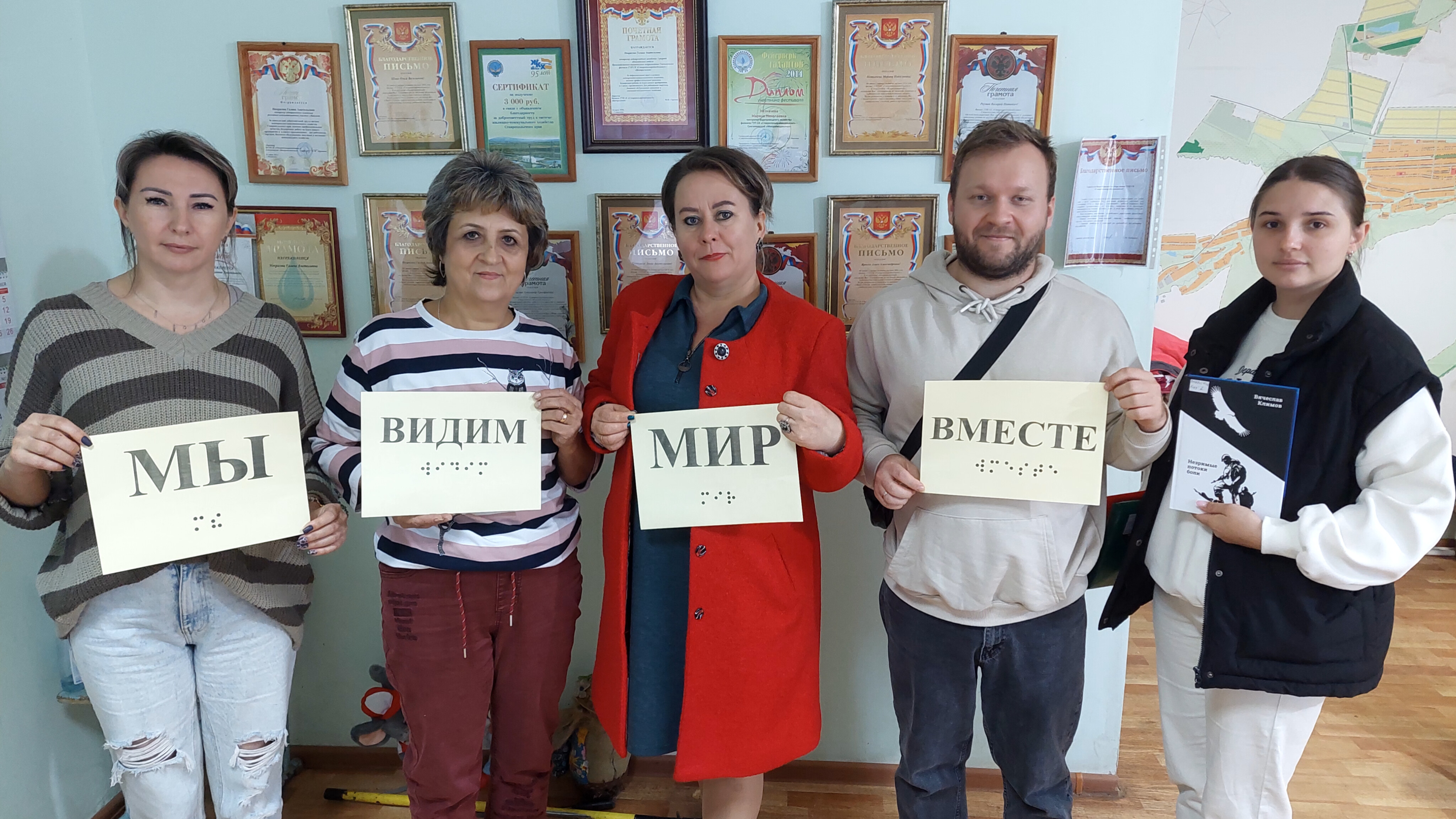 16 октября 2025 года в библиотеке-филиале №19 (ст.Новомарьевской) прошел диспут «Планета толерантности». Библиотекари пригласили гостей подискутировать о том, достаточно ли общество и государство уделяет внимание незрячим людям, о доступности тактильно-звуковых устройств для слепых, о том, что мы знаем о писателях и творческих людях с ограниченными возможностями, которые своим упорством и любовью к жизни добились огромных успехов и обрели мировую славу: Эдуард Асадов, Михаил Суворов, Николай Островский, Диана Гурцкая, Иоганн Бах. Читатели прошлись по культурно-досуговому центру и рассмотрели указатели с азбукой Брайля, обсудили их необходимость.
