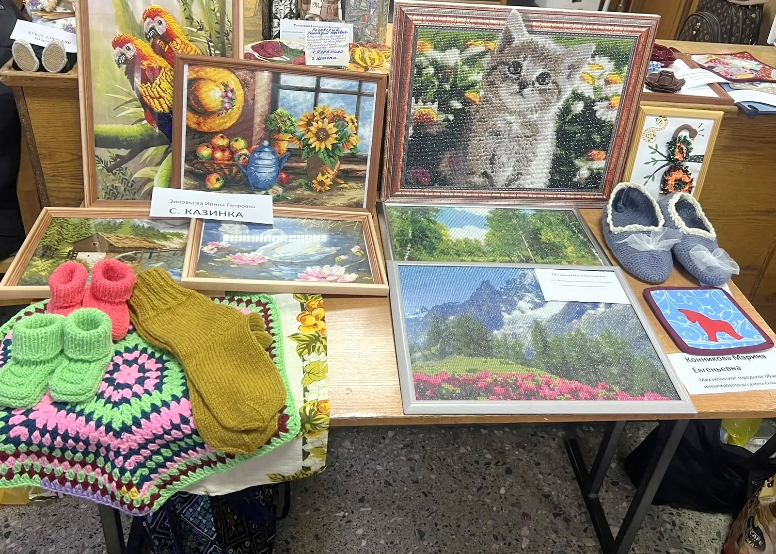 Перед концертом была развернута выставка изделий декоративно прикладного творчества, живописных картин, выполненная в различных техниках.