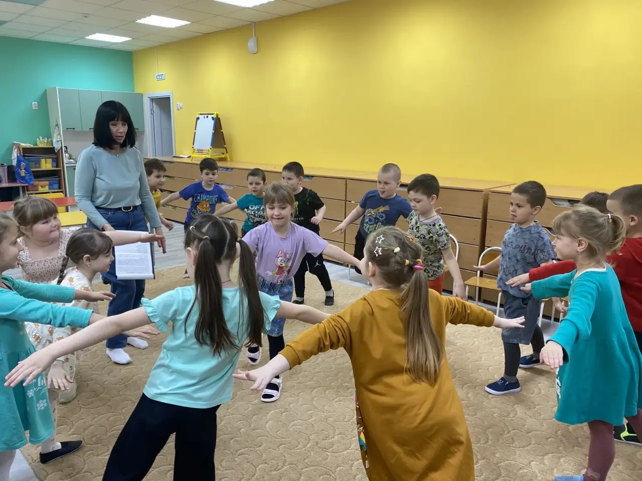 Продолжением Недели стала литературная игра «Широка страна моя родная» в библиотеке-филиале №22 (с. Пелагиада). В начале мероприятия дети познакомились с историей нашей Родины, с этническим разнообразием России, поговорили о государственных символах. Первой остановкой стал Крайний Север, ребята узнали о суровом климате и познакомились с подвижной игрой «Золотинка», где проявили ловкость и внимание. Затем отправились на Кавказ. После рассказа о горах и традициях прошла игра «Маленький круг - большой круг», которая помогла детям почувствовать ритм и единство. Финальной точкой стал Дальний Восток. Дошкольники «погрузились» в море в игре «Рыбки плавают в воде», показав слаженность и быстроту реакций.