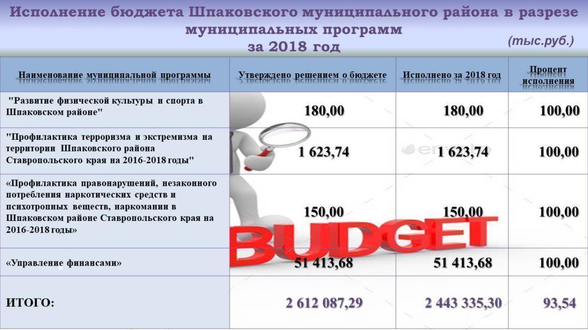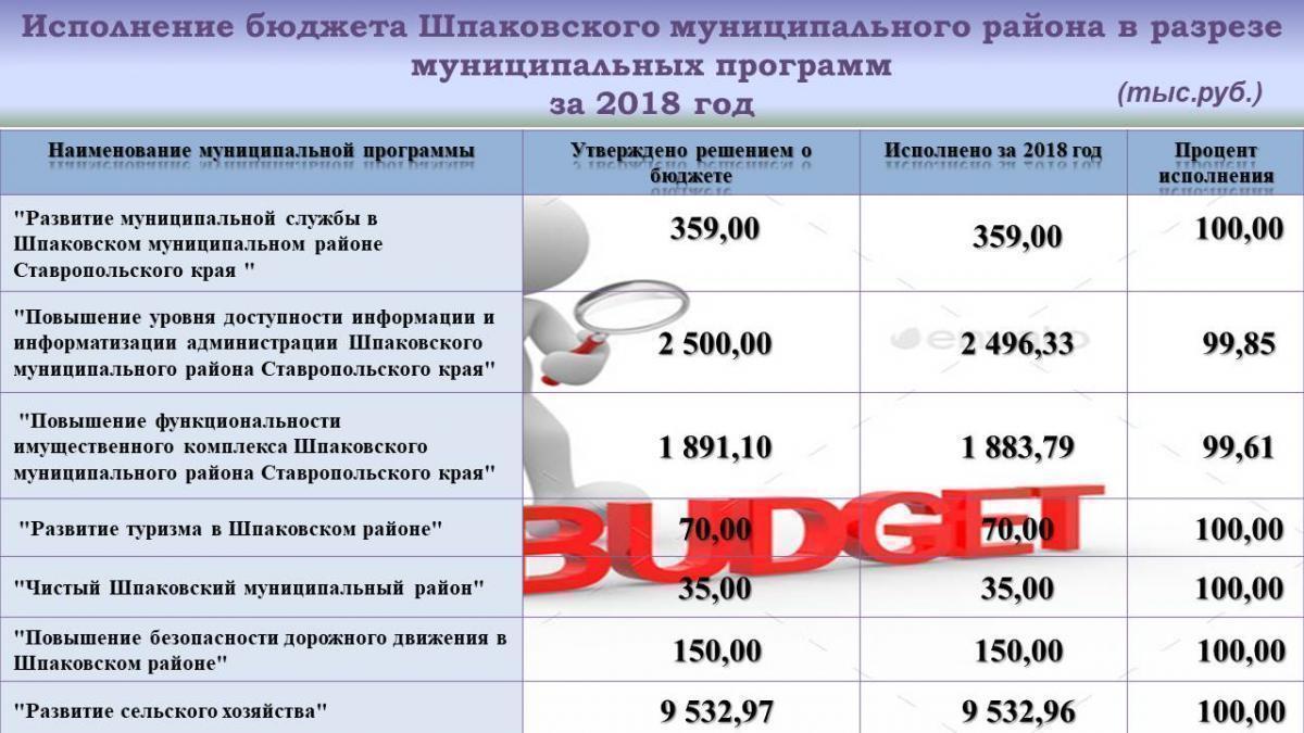 Исполнение бюджета Шпаковского муниципального района Ставропольского края за 2018 год