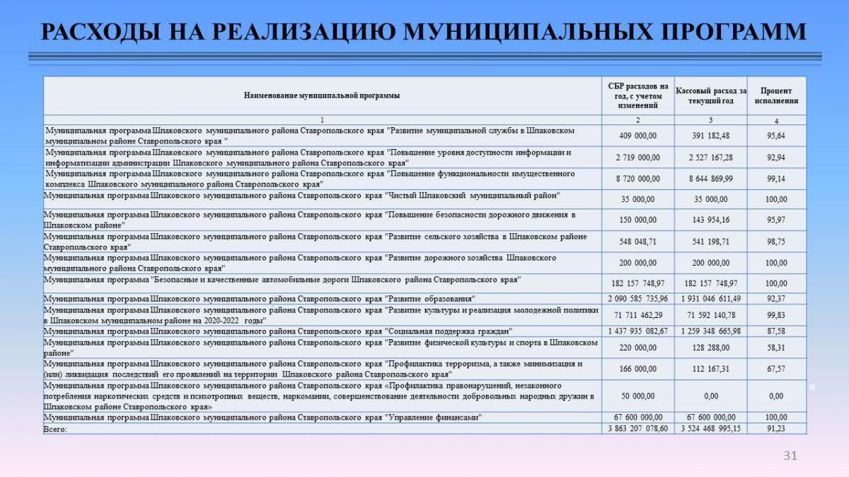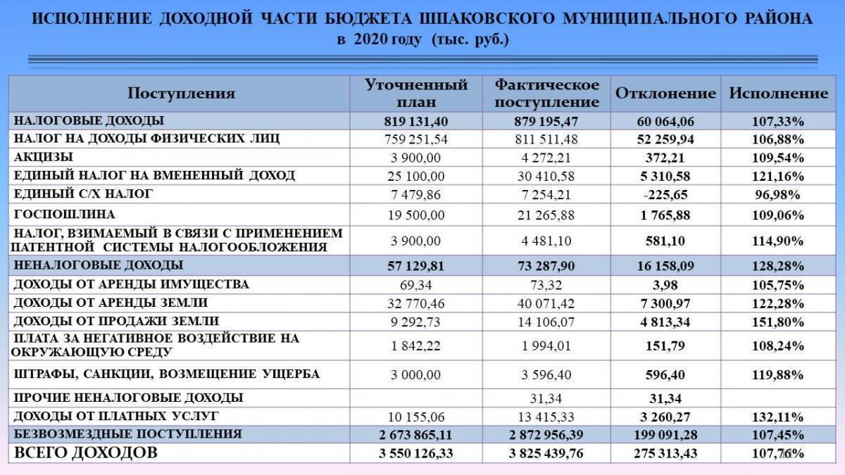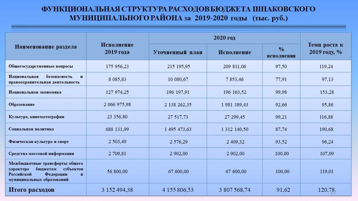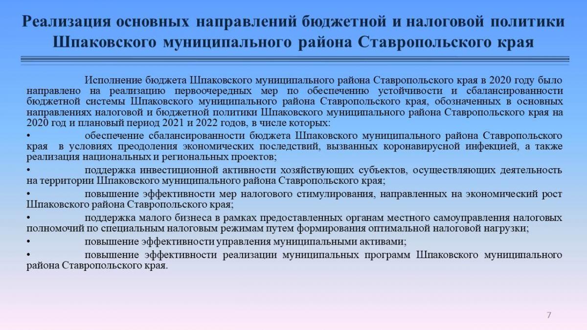 Исполнение бюджета Шпаковского муниципального района Ставропольского края за 2020 год