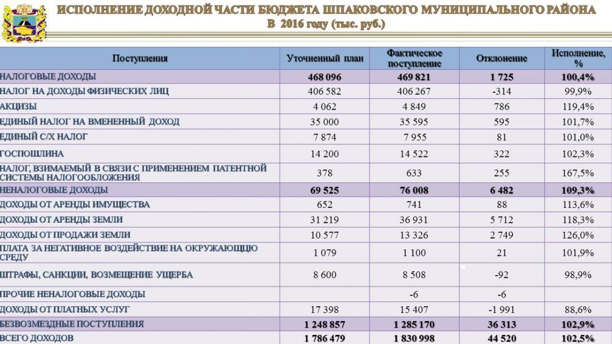 Исполнение бюджета за 2016 год