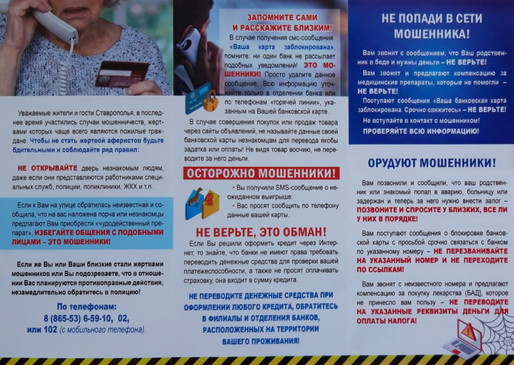 Отдел МВД России «Шпаковский» предупреждает: будьте бдительны, не дайте себя обмануть!