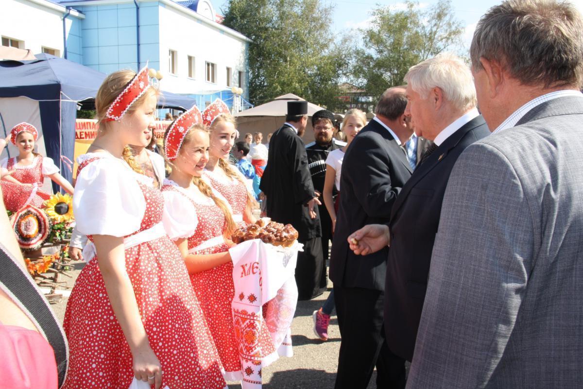 Вокруг главной площади гостей принимали хлебосольные подворья всех поселений Шпаковского района. Шашлык на любой вкус, пирожки и вареники, шулюм и щи, разнообразные соленья – гостеприимные хозяева радовали гостей угощениями.