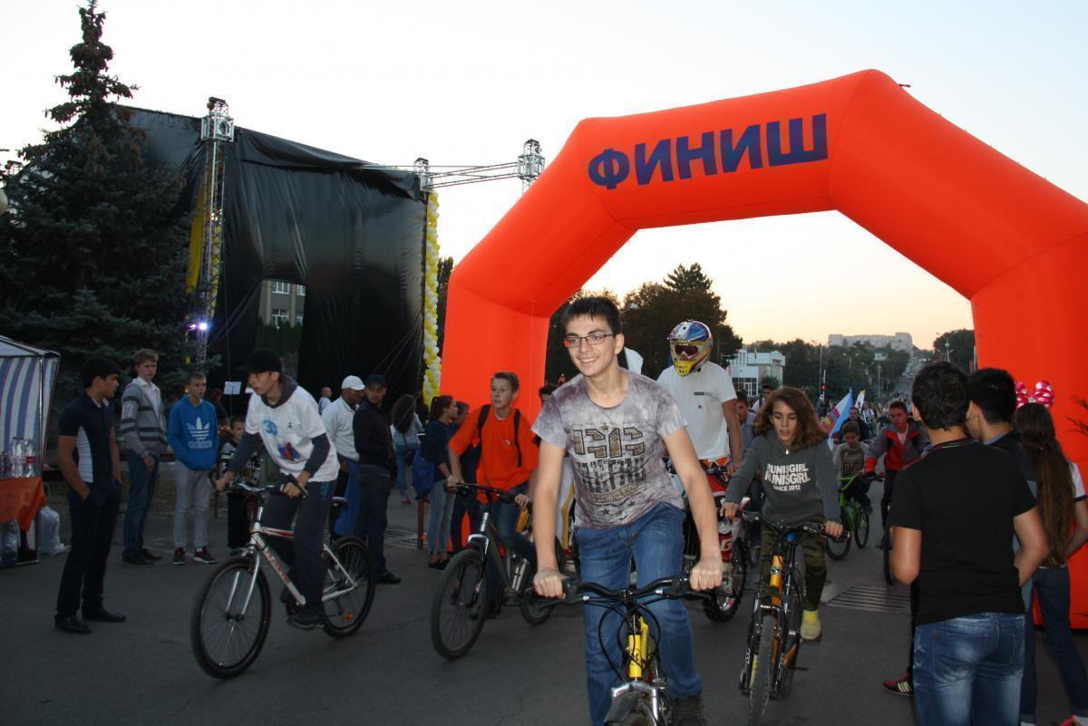 Вечернюю праздничную программу открыл велопробег, в котором приняло участие около двухсот любителей спортивного образа жизни. Одновременно на сцене стартовало молодежное шоу. Конкурсы и розыгрыши призов, вступление в ряды Российского союза молодежи, награждение самых талантливых и активных, дискотека – специалисты Центра молодежных проектов, подготовившие программу, постарались на славу.
