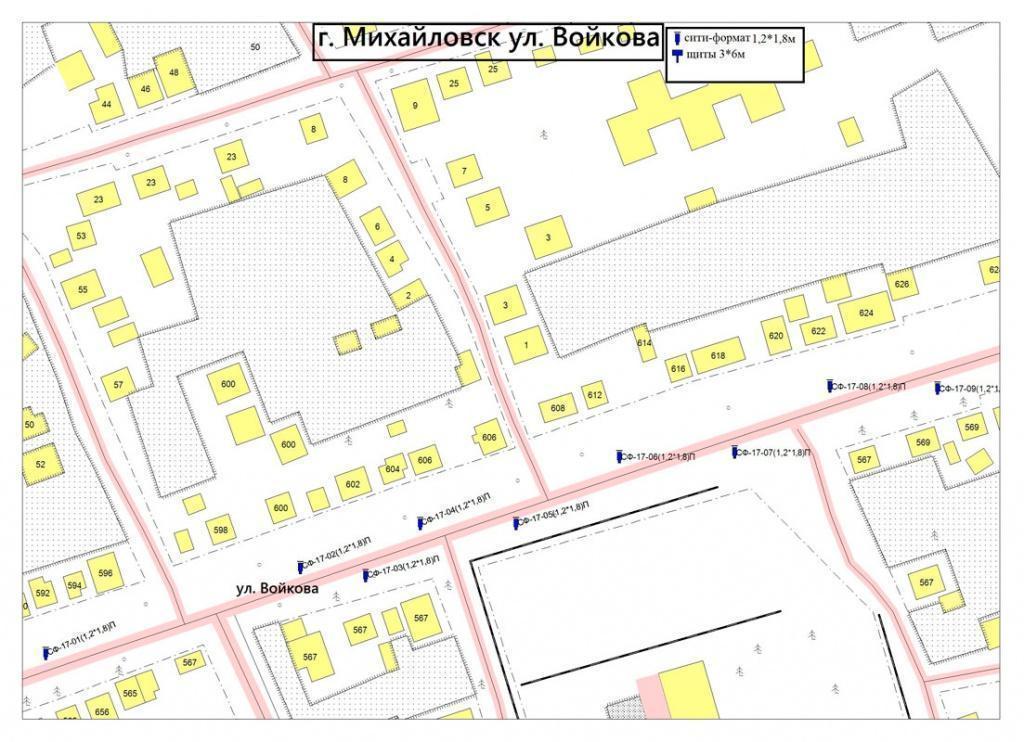 Схема размещения рекламных конструкций на территории города Михайловска