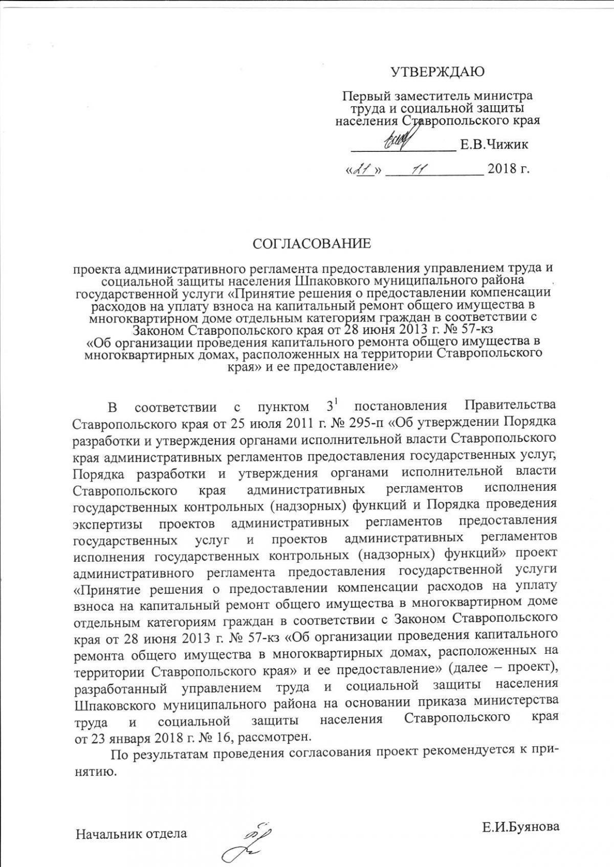 "«Принятие решения о предоставлении компенсации расходов на уплату взноса на капитальный ремонт общего имущества в многоквартирном доме отдельным категориям граждан в соответствии с Законом Ставропольского края от 28 июня 2013 г. № 57-кз «Об организации проведения капитального ремонта общего имущества в многоквартирных домах, расположенных на территории Ставропольского края» и ее предоставление»"Адрес приема предложений и (или) замечаний: